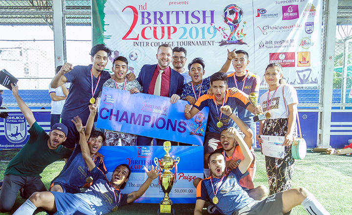 Title winner of the 2nd British Cup is Apex college and the runners up NCMT College. Best Player of the tournament was awarded to Devansh Sharma of Apex College and the Best Keeper of the tournament was awarded to Akash Thapa of NCMT College.