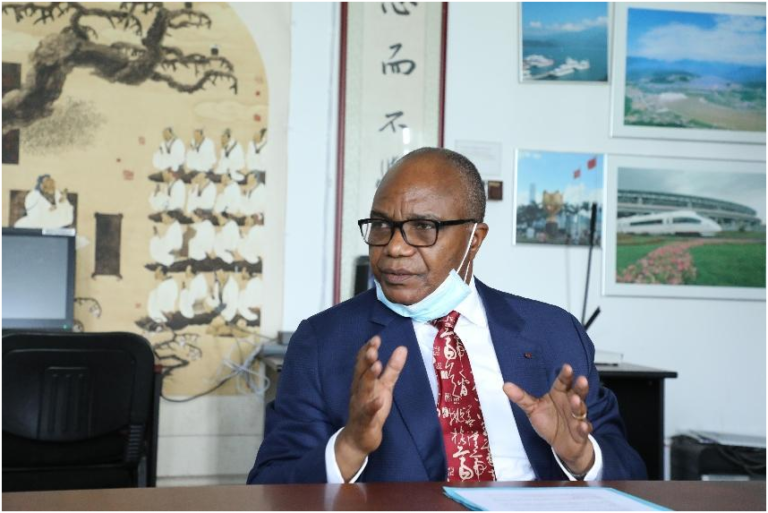 Armand Moyikoua, rector of the prestigious MarienNgouabi University in Brazzaville, capital of the Republic of the Congo, receives an interview with People’s Daily. (Photo by ShenXiaoxiao/People’s Daily)