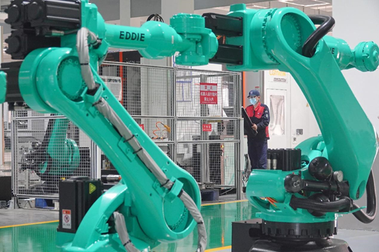 A worker controls robotic arms in a workshop of a precision machinery company in Yantai, east China’s Shandong province, Nov. 23, 2022. (Photo by Tang Ke/People’s Daily Online)
