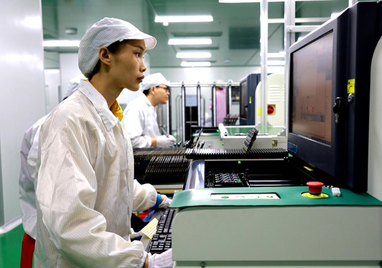 In a smart factory of Lenovo in Shenzhen, south China’s Guangdong province, which boasts an automation rate of 60 percent, laptop rolls off the production line every 14 seconds. The production line employs 268 robotic arms and automated guided vehicles and is able to produce 1.2 million laptops on an annual basis.