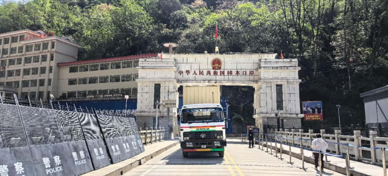 On both sides of the border, heavy trucks are a common sight. Their cabs and trailers are often decorated with care, some even display both Chinese and Nepali flags, and are painted with phrases like “China-Nepal Friendship” and “Brothers Forever.”