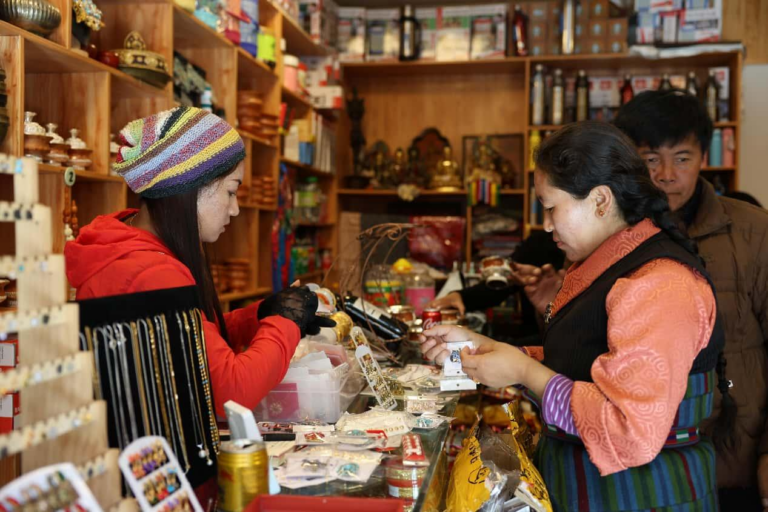 The Norling Restaurant in Gyirong township is a local favorite. It is run by Nepali entrepreneur Mingma Tsomo and her husband, who introduced authentic Nepali flavors to Gyirong 14 years ago. In 2019, Mingma Tsomo expanded her business by opening a clothing and specialty store in the township’s border trade market. “We make about 300,000 to 400,000 yuan ($41,705 to $55,607) a year,” she said.
