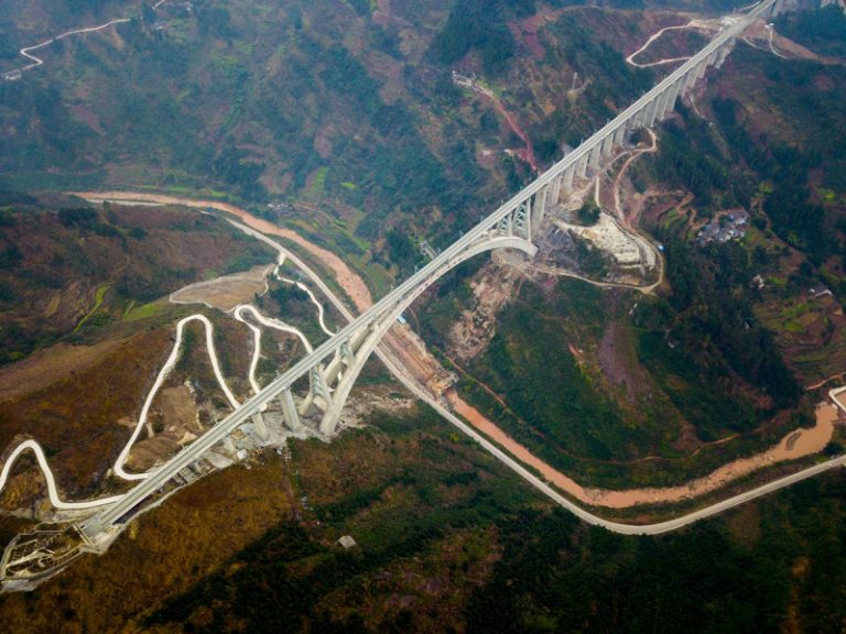Photo shows the Yelang River Bridge at Tongzi County of Zunyi City, southwest China’s Guizhou Province. The bridge is an important part of a railway connecting two major cities in southwest China, Chongqing Municipality and Guiyang, capital of Guizhou. The bridge and the railway are both put into a test run.