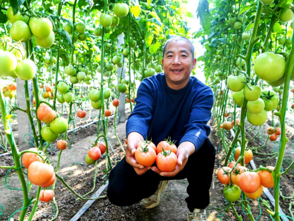“This year’s tomatoes are well-shaped and have an exquisite taste,” said farmer Han Yougong. He told People’s Daily that these tomatoes typically sell for over 5 yuan ($0.69) per jin (one jin equals 500 grams), bringing in an estimated income of 100,000 yuan per mu (one mu equals 0.07 hectares).