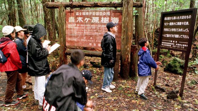 Due to the vastness of the forest, desperate visitors are unlikely to encounter anyone once inside the so-called “Sea of Trees,” so the police have mounted signs reading “Your life is a precious gift from your parents,” and “Please consult the police before you decide to die!” on trees throughout.