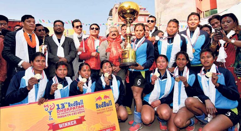 The departmental team Armed Police Force (APF) has lifted the 13th Red Bull Dhorpatan UM Women’s Double League Volleyball Tournament defeating Shivam New Diamond Academy (NDA) in the last match of the league stage on Saturday.