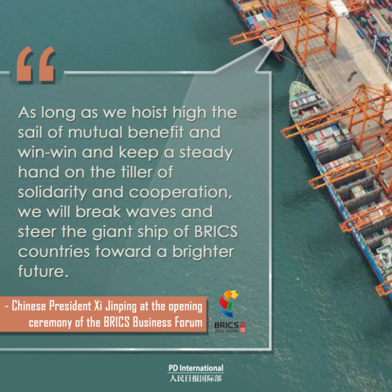 “As long as we hoist high the sail of mutual benefit and win-win and keep a steady hand on the tiller of solidarity and cooperation, we will break waves and steer the giant ship of BRICS countries towards a brighter future.” : Chinese president Xi Jinping