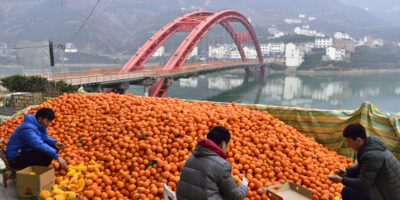 ZIGUI, Jan. 18, 2018 People pack navel oranges in Guojiaba Village in Zigui County, central China’s Hubei Province. Zigui County, known as China’s hometown of navel oranges, has 300,000 mu