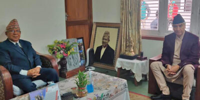 14 July 2021, Kathmandu Prime Minister Sher Bahadur Deuba has reached Koteshwore to meet CPN-UML Senior Leader Madhav Kumar Nepal. Deuba was appointed as PM with the support of UML’s