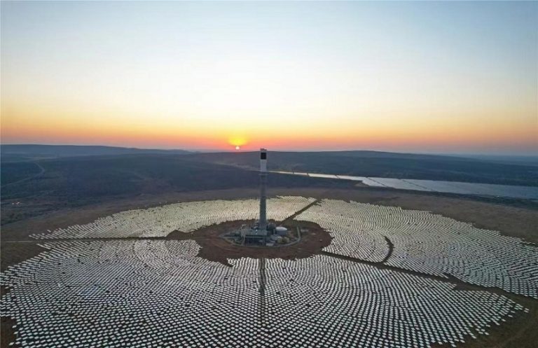 By Xu Lingyuan, In the town of Postmasburg in Northern Cape Province of South Africa, where there are abundant sunshine and vast land, the Chinese-built 100-megawatt (MW) Redstone Concentrated Solar Thermal Power (CSP) Project resembles a giant sunflower, harnessing the sun’s light and heat.