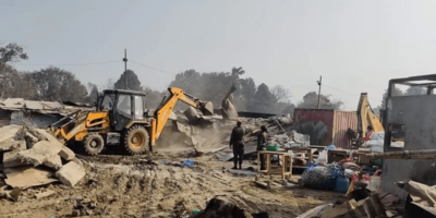 17 February 2021, Kathmandu Kathmandu Metropolitan City (KMC) on Wednesday morning cleared encroachment at Khula Manch by bulldozing makeshifts tents. Mayor Bidya Sundar Shakya said that the construction materials and