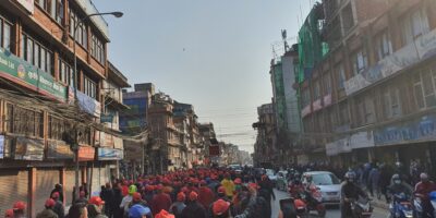 5 February 2021, Kathmandu The Oli faction of the ruling Nepal Communist Party (NCP) is staging a mass demonstration in a show of strength in the Kathmandu Valley on Friday.