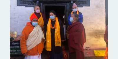 30 October 2021, Kathmandu President Bidya Devi Bhandari has performed worship at Muktinath Temple in the Mustang district this morning. On the occasion, President Bhandari received prasad from temple priest