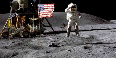 AP, Jan 7, 2018: In this April 1972 photo made available by NASA, John Young salutes the U.S. flag at the Descartes landing site on the moon during the first