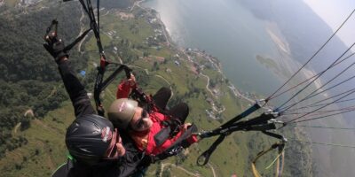 21 October 2020, Kathmandu Over 200 adventure lovers are seen gliding in the sky of Pokhara on a daily basis after the paragliding companies introduced low-fare flight services to revive