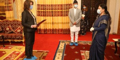 27 September 2020, Kathmandu Newly-appointed Ambassador and Head of the Delegation of the European Union to Nepal, Nona Deprez, presented her credentials to President Bidhya Devi Bhandari at a function