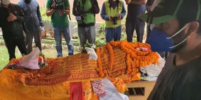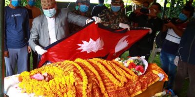 19 August 2020, Kathmandu The body of Rastrakavi (National Poet) Madhav Prasad Ghimire has been cremated with state honors at Pashupati Aryaghat on Wednesday. A team of Nepal Army offered