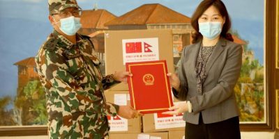13 May 2020, Kathmandu China’s People’s Liberation Army handed over medical supplies to Nepal Army worth five million Yuan on Wednesday. An aircraft belonging to China Air Force carrying medical