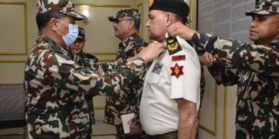 11 May 2020, Kathmandu Chief of the Army Staff (CoAS) General Purna Chandra Thapa has conferred the rank insignia to the newly promoted Major General Dhruba Raj Khatri amid a