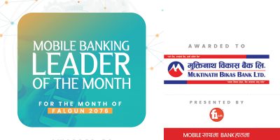 F1Soft announced Muktinath Bikas Bank as the “Mobile Banking Leader” for the month of Falgun. The bank was selected out of 49 Banks and Financial Institutions (Fonepay Network Banks) with