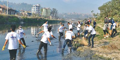 7 March 2020, Kathmandu The 356th Bagmati Clean-up Campaign is taking place in a symbolic way over the deadly corona virus spreading across the world. As shared by Mala Kharel,