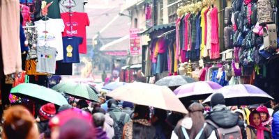 7 March 2020, Kathmandu Kathmandu Valley is witnessing light to moderate rain since early Saturday. People are seen walking with umbrellas and motorcyclists in raincoats. The Meteorological Forecasting Division (MFD)