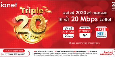31 December 2019, Kathmandu On the occasion of New Year 2020, Vianet launches “Triple 20 offer” for its customers. To mark the start of the New Year 2020 Vianet is