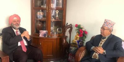 9 December 2019, Kathmandu Nepal Communist Party (NCP) senior leader Madhav Kumar Nepal and Ambassador of India to Nepal, Manjeev Singh Puri held talks on Monday at leader Nepal’s residence