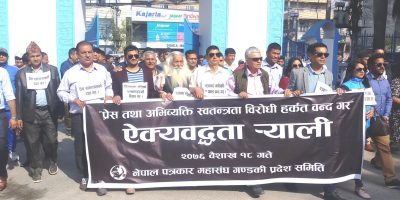01 May 2019, Kaski Federation of Nepali Journalists (FNJ) in collaboration with its Gandaki state committee organized a rally in Pokhara where the participants pressed for press freedom for one