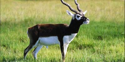 10 April 2019, Kanchanpur The number of protected blackbuck (Antelope cervicapra), locally known as Krishnasar, in the Shuklaphanta National Park is increasing each year with its number counted 82 at