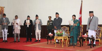 Kathmandu, Feb 27 President Bidya Devi Bhandari administered the oath of office and secrecy to four new ministers inducted in the KP Sharma Oli-led government today. They are Ishwor Pokhrel
