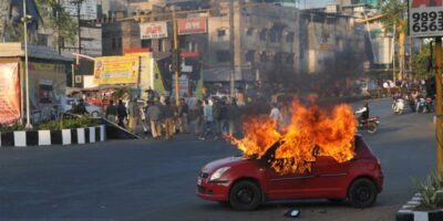 New Delhi, India Jan 26, 2018 Hindu right-wing groups have vandalized public and private properties and attacked cinema halls across five Indian states protesting against the release of Bollywood film “Padmaavat”. Many