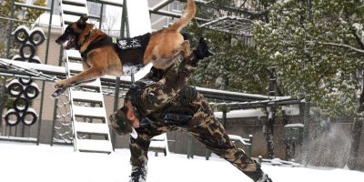 HEFEI, Jan. 29, 2018 A police dog is trained at a training base in Hefei, east China’s Anhui Province, Jan. 27, 2018 Xinhua
