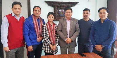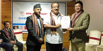 9 April 2019, Kathmandu President of Nepal Olympic Committee / Member of Parliament Honorable Jeevan Ram Shrestha bade farewell to the two Olympians for the 9th International Athletes Forum taking