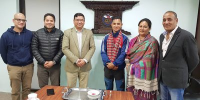 15 February 2019, Kathmandu President of NOC/Member of Parliament Honorable Jeevan Ram Shrestha bade farewell to Mr.Aasish Chaudhary for the training program from Asian Athletic Academy slated at Tokyo, Japan