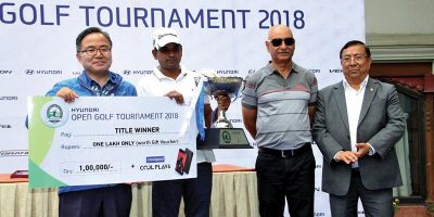 Rabindra Tiwari won the title of the Hyundai Open Golf Tournament here at the Gokarna Golf Club today. Played under Stableford ¾ handicap format, the six-handicapper Tiwari accumulated 41 points