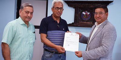 President of NOC Honorable Jeevan Ram Shrestha along with Treasurer of NOC Mr. Ratan Tandon handed over the official appointment letter of the Executive Director to Mr. Chaturanandra Rajvaidhya who