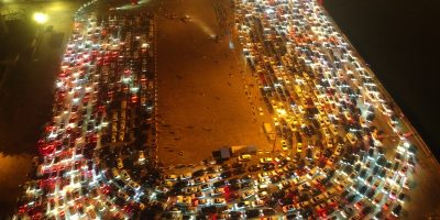 HAIKOU, Feb. 22, 2018 Vehicles wait for ferry service at Xiuying port in Haikou, capital of south China’s Hainan Province, Feb. 21, 2018. As the fog continues dispersing, with the
