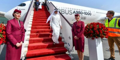 DOHA, Jan. 28, 2018 Qatar Airways CEO Akbar Al-Baker gets off an Airbus A350-1000 jet at Doha International Airport in Doha, capital of Qatar, on Jan. 27, 2018. The brand