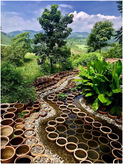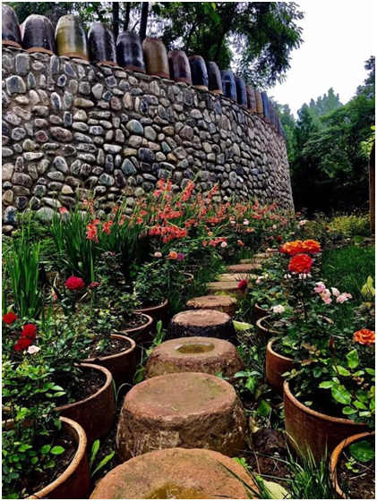 In Huashu’aovillage, Luoning county, Luoyang city of Henan, big ceramic vats are seen everywhere. They are flowerpots, guard bars, and dustbins, as well as road signs and billboards in the village. Besides, they are also sometimes goods shelves in shops and tea tables in meeting rooms. Even the footpath in the village’s valleys is paved with vats.