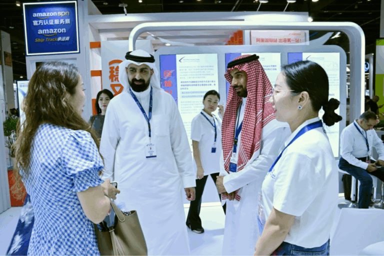 Business representatives from Saudi Arabia negotiate with their Chinese and international counterparts at the Zhejiang International Electronic Commerce Expo 2025 held in Yiwu, east China’s Zhejiang province, June 21, 2025. (Photo by Lyu Bin/People’s Daily Online)