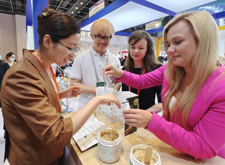 Hungarian noble rot wine, ouzo from Greece, and a series of other commodities under the EU geographical indications system were exhibited at the expo. Dazzling exhibits, including foldable Slovenian skis and fragrant Bulgarian rose essential oil, attracted visitors’ attention.