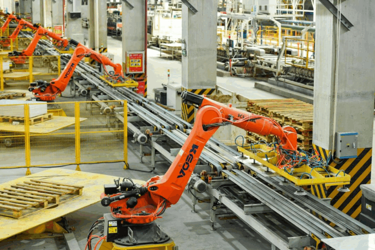 Robotic arms work on a fully automated ceramics production line at a factory of a company in Fengcheng, east China’s Jiangxi province. (Photo by Zhou Liang/People’s Daily Online)