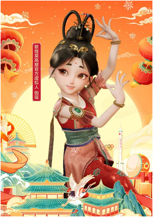 Du Juan, who’s in charge of the Dunhuang Academy’s media center, told People’s Daily that the official virtual cartoon figure Jiayao of the Mogao Grottoes has dynamic facial expressions, and her hair, clothes, and accessories can even sway with the “wind.”