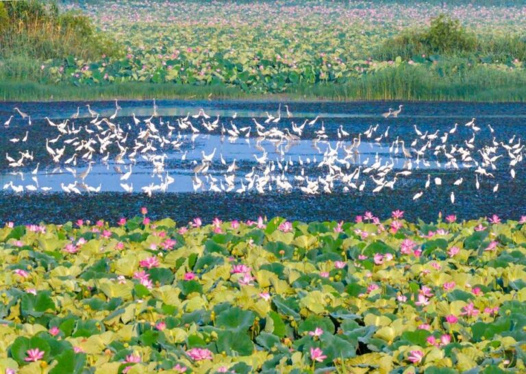 Egrets forage and rest in a wetland in Suqian, east China’s Jiangsu province, Aug. 4, 2025. (Photo/Zhang Lianhua)