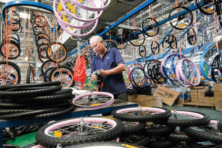 Bikes for export are manufactured in a workshop in an industrial park in Bengbu, east China’s Anhui province, July 7, 2025. (Photo/Li Xiangqian)