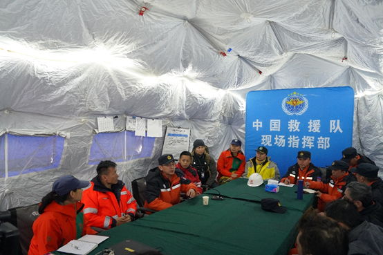 Civil Chinese rescue teams convene a coordination meeting in Türkiye. (Photo courtesy of the Ministry of Emergency Management of China)