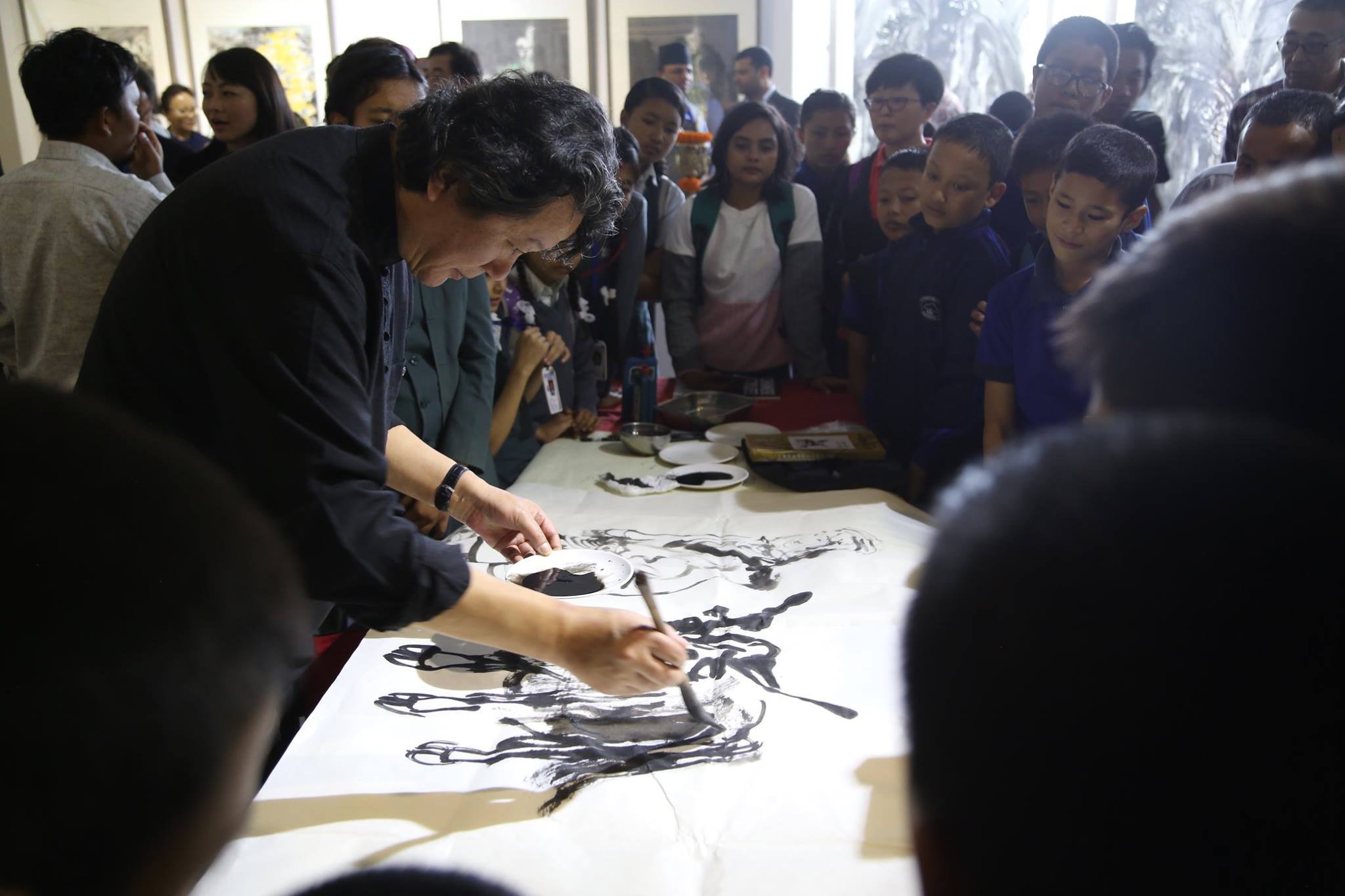 About two hundred people turned up at the exhibition. Some participants from Everest English School and Genuine Secondary School painted live at the exhibition.