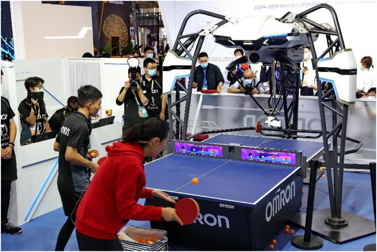 The robot, which will be joining the CIIE for a fifth time, was developed in 2013. It was certified by Guinness World Records as the world’s first robot table tennis tutor. The seventh generation of the robot has been launched so far.