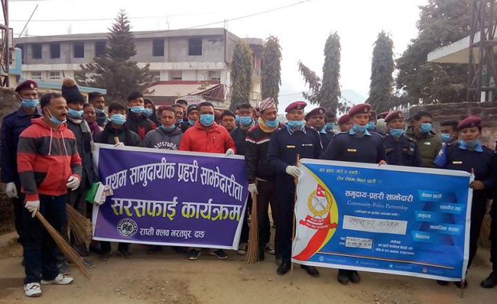 In addition to this, community-police partnership program is running largely based on society centered and school centered perspective. The priorities within community based programs encompass basic security, control over the crime and violence against women, children and senior citizens, child marriage, dowry, chaupedi, bullying and ragging, human trafficking etc Similarly, issues such as road safety, conflict management, cyber security, control over drugs and alcoholic products, environment conservation etc. are included under this program. On the next hand, in co-ordination with community, programs such as door to door campaign, pamphlets, trainings, interaction, rally, cultural programs and other creative programs are being conducted.